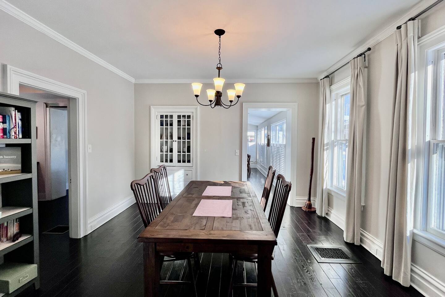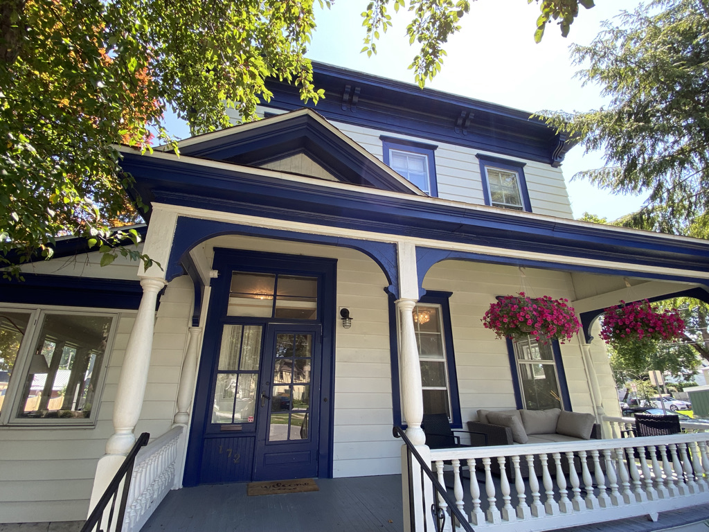 Beautifully renovated historic home features a custom designed kitchen, pantry and mudroom, dining room, living room, wet bar, grill & patio, and a side sun room/office for relaxing! Laundry and half bath on main floor. Upstairs, there are 4 bedrooms and 3 full baths – primary suite w/ king bed, 1 bedroom has a queen bed, another has a queen pullout. The 4th bedroom is currently set up as a nursery but will have a Double bed.