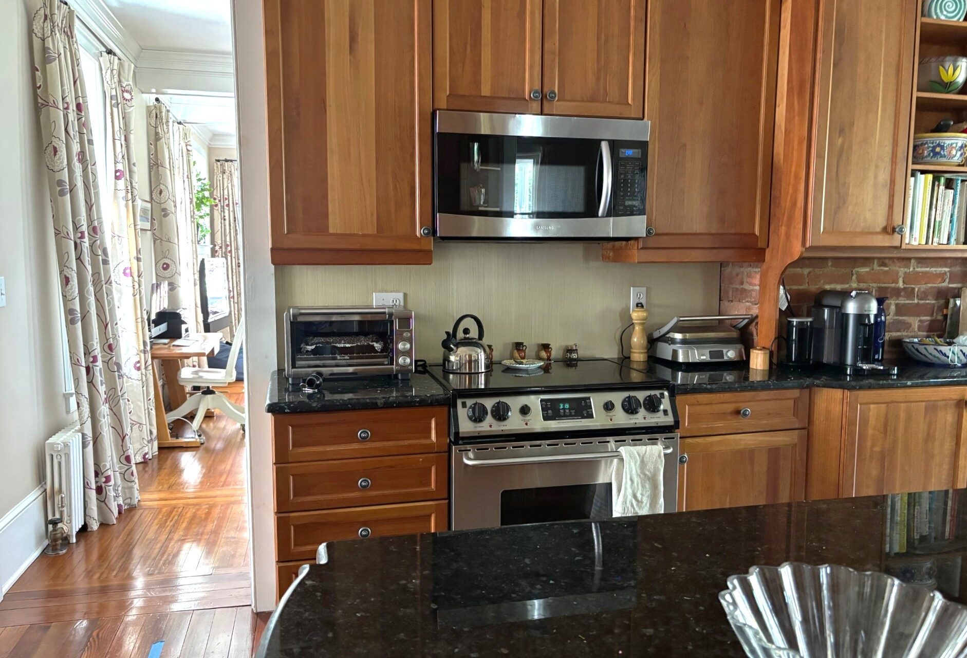 Formal living room and dining room, family room, gourmet kitchen with breakfast area overlooking the large side yard, and a lovely 3 season room which leads to the large side porch. Primary suite and 3 additional bedrooms are on the 2nd floor, along with 2 additional baths. There is a combination of central air and window units (if needed), plenty of TVs, wireless internet, outdoor furnishings and off-street parking.
